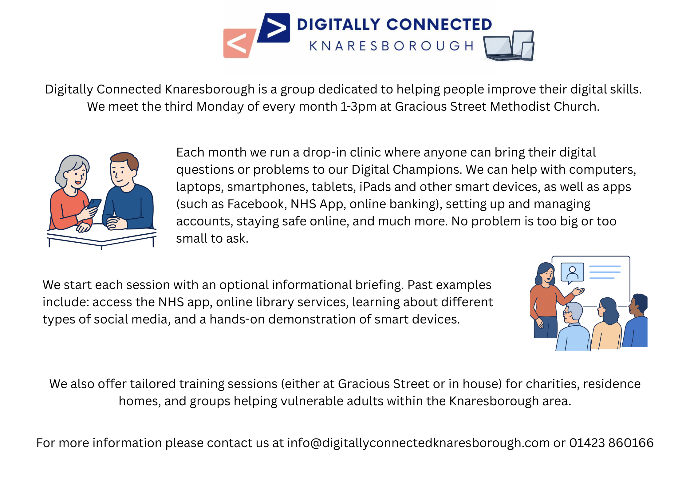 Additional information: Chain Lane Community Hub in Knaresborough also run "CLICK Knaresborough" a free drop-in clinic every Thursday 2-4 pm. Visit CLICK Knaresborough – Chain Lane Community Hub for more information.
